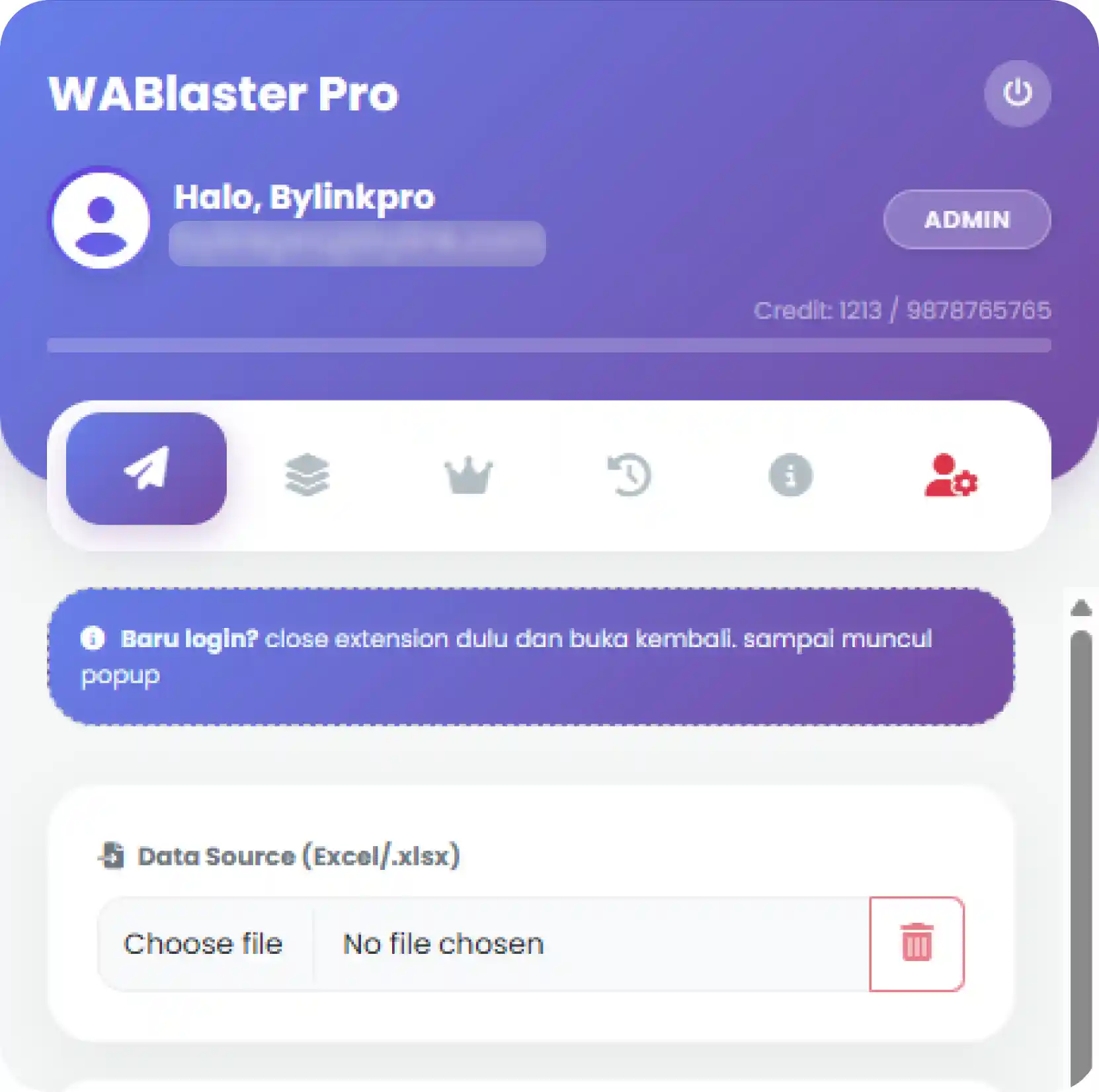 3. Saat proses Blast, pastikan layar browser tidak di tutup atau di minimizes, tertimpa dengan software lainnya saat proses berlangsung.